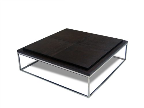 Functional Versatile and Stylish this Square Cocktail Table from Diamond Sofa has it all With its Ash Veneer top in a Dark Walnut finish accented by the chrome metal base a striking balance has been struck Four reversible accent table top trays also ....../ Square Veneer Top Cocktail Table in Dark Walnut / Walnut Veneer